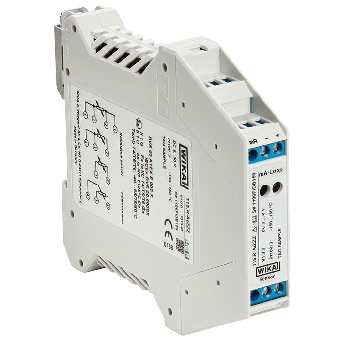 WIKA T15 digital temperature transmitter, for resistance sensors. Head and rail-mount version.